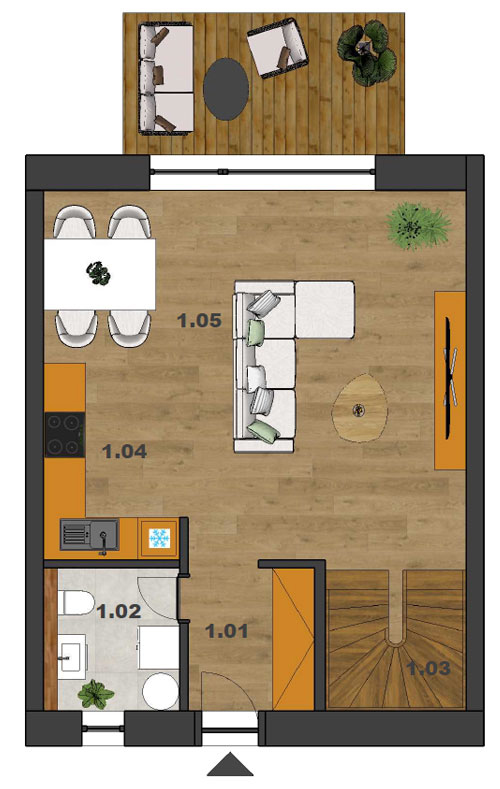| 1.05 | Obývacia izba, jedáleň | 26,70 |